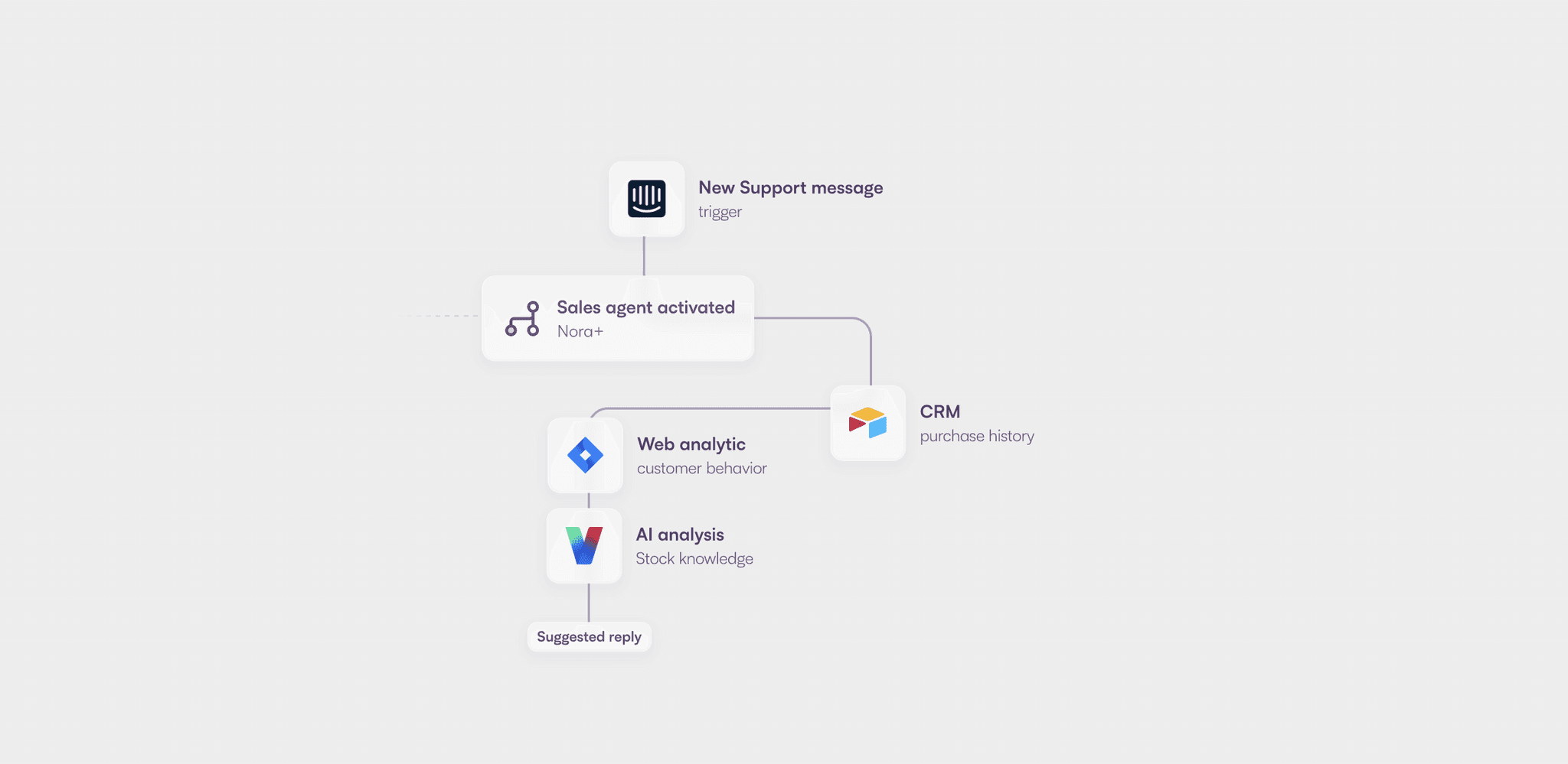 Suggests what to say and when, turning every support ticket into upsell and cross-sell opportunities using customer history and profile.